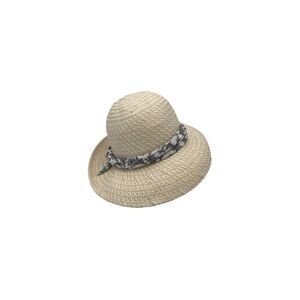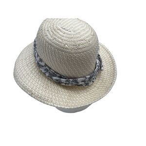 Jcrew hat with a floral tie around the base of hat. 100% paper hat