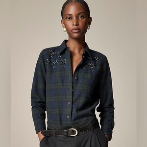 J.crew Embellished shrunken button-up shirt tartan indie academia green blue 3X