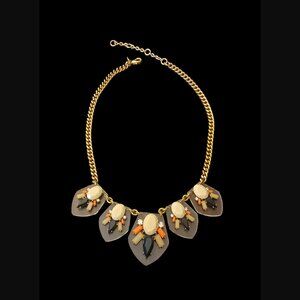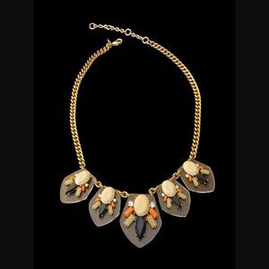 J.crew Gold Tone Acrylic Stone Clear Shield Chunky Statement Collar Necklace