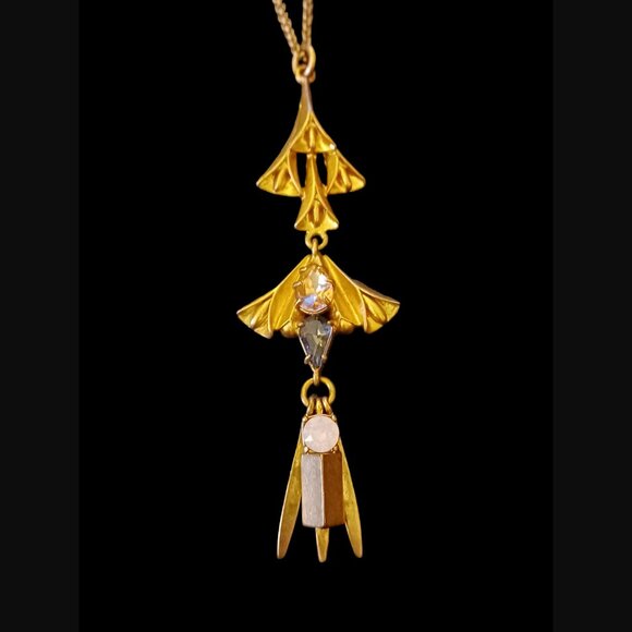 J.crew Gold Tone Vintage Floral Rhinestone 31.5" Drop Dangle Necklace
