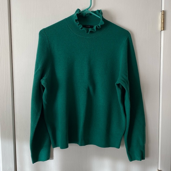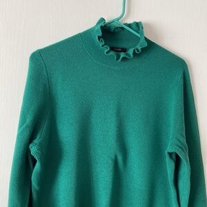 Wool blend sweater. Ruffle neck. Excellent condition - only worn once or twice. Green in cover picture is most accurate to color. Pit to pit: 21 in