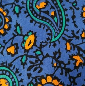 Adorable mini skirt and super comfy! Has front pockets, amazing orange and green paisley print on blue background. Zipper in the back with hook and eye closure.