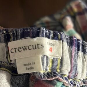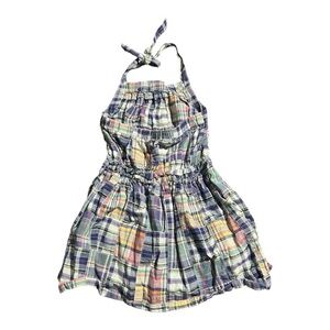 Jcrew This sleeveless sundress from Crewcuts features a vibrant mix of blue and pink in a playful plaid pattern. Designed with a halter neckline, it offers a breezy and casual style perfect for warm weather. The dress has a gathered waistline and a flared skirt, adding a touch of femininity to its classic preppy look.size 4