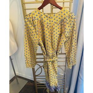 Get ready to turn heads with this stunning J.Crew Point Sur Paisley Romper in a beautiful mustard yellow color. Made from 100% cotton with a lightweight and breathable knit fabric type, this romper is perfect for a casual occasion during the summer season. The V-neckline and long sleeves add a touch of elegance, while the tasseled accents give off a bohemian vibe.