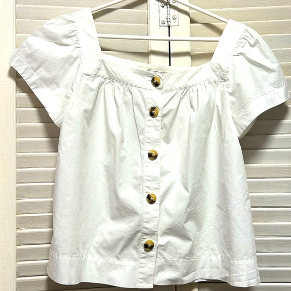 Square neck Pointe Sur shirt. Poplin cotton. Button front. In excellent condition. Has little clips to hold your bra straps. Tortoise shell buttons.