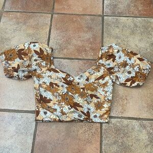 Pit to pit measurement lying flat is 16 1/2 inches. From the top middle of the chest to the bottom of the top is 9 1/2 inches. Sleeves can be worn on or off the shoulder.