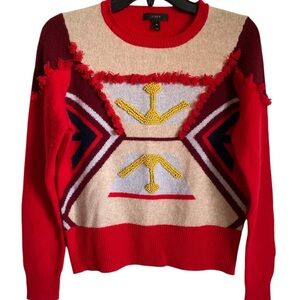 J.crew VTg Arrow Tassel 100% Wool Crewneck Art To Wear Academia Preppy Sweater M