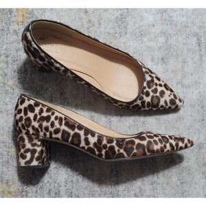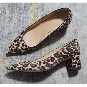 Jcrew Women's Calf Hair Leopard Pointed Toe Pump Low Block Heel Size 9