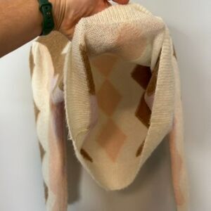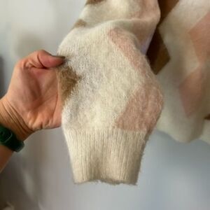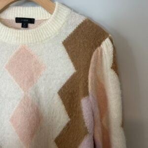 J.crew Womens Pullover Diamond-checked Cropped Crewneck Sweater Size Medium Long Sleeve Top Winter Fall Warm Casual Soft Comfy Wool Alpaca Cream Pink Brown BD026 From a smoke-free, dog friendly home Open to reasonable offers  Measurements are approximate  Armpit to armpit: 22" across  Shoulder to hem: 21"  Armpit to end of sleeve: 17"  Condition: Pre-owned. Good condition with some light wear