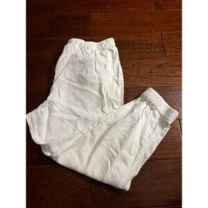 J.crew Womens White Lounge Linen Joggers elastic Waist Costal Pants Sz 12P