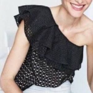 Jcrew black one shoulder eyelet top