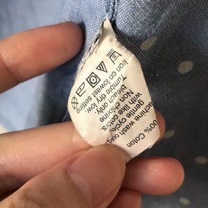 Good condition button down shirt, super cute polka dot, light blue, size 00