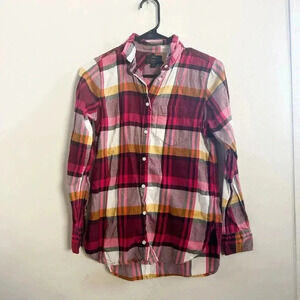 J.crew classic plaid button down. Red and yellow pattern. size 0. Fits true to size and excellent used condition