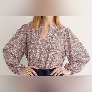 Long sleeve with floral print and elastic cuffs. Eyelet neckline gives it a feminine touch. This blouse was never used.