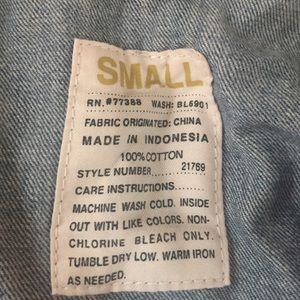 This is a great light jean jacket that is amazing quality! I recently got a new jean jacket and do not want this one anymore! It is 100% Cotten and super stylish!
