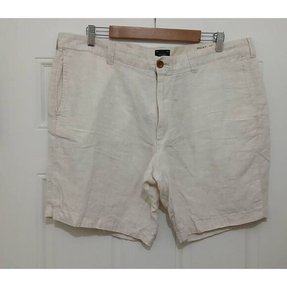 J crew mens 38 waist Bermuda shorts tan oatmeal 100% linen beach boho