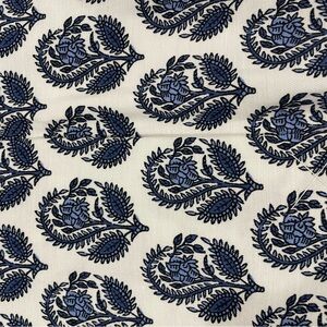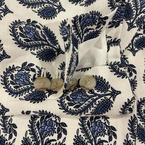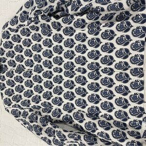 Brand new, never worn, white background with shades of blue motif