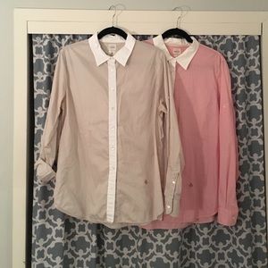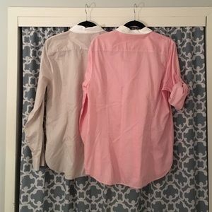 Same shirt in two colors! Tan and coral both with tiny pinstripe details! Buy Both for a discount! Originally $78 each- asking $35 each or $60 for the pair!