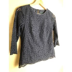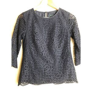 J Crew Womens Size 0 Black Lace Overlay Top Blouse Shirt 3/4 Sleeve