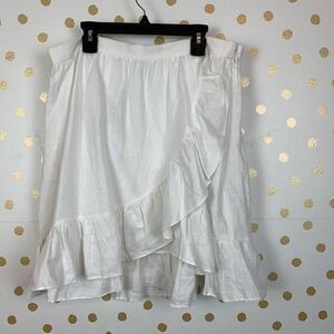 •Features: White skirt with ruffle hem. Hidden side zipper.