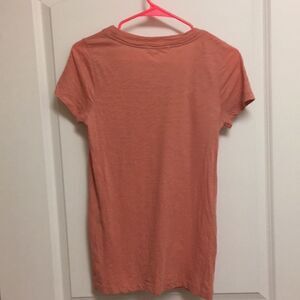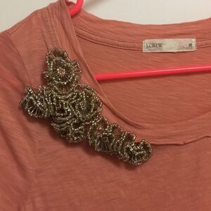 Jcrew salmon/peach colored T-shirt. Embellished with a beaded flower motif on upper right shoulder. Size Small.