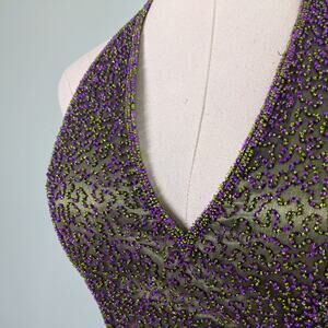 Je Matadi Prom Dress Maxi Gown 8 Purple Green Silk Bead Pageant Glam Train Y2K