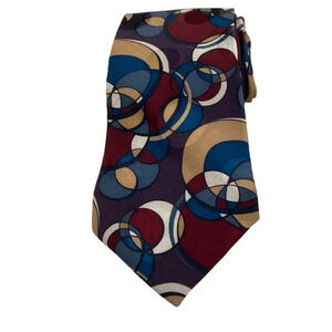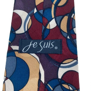 Je Suis 100% Silk Multicolor Geometric Pattern Tie Circles Necktie USA