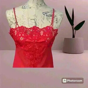 Je Tadore Lingerie Top Red Lace Embroidered Size M