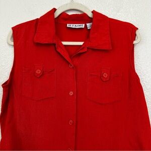 Je T'aime Linen Blend Orange Red Button Down Sleeveless Shirt Top, Sz Large