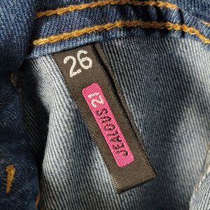 Jealous 21 Womens Belted High Rise Wide Leg Retro Crop Denim Blue Jeans Size 26