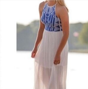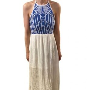 Jealous Tomato Blue and White Maxi Halter Dress