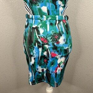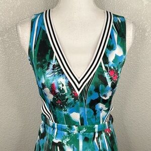 Jealous Tomato Floral Blue & Green V-Neck Cut Out Mini Dress Size Small