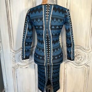 Jealous Tomato Geo Graphic Long Sleeve Deep V Neck Body con Knit Dress Size S