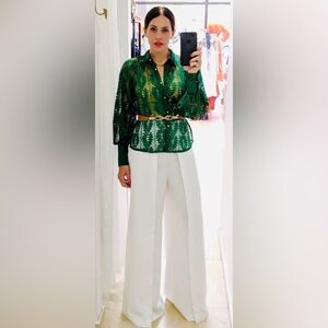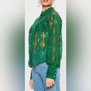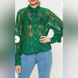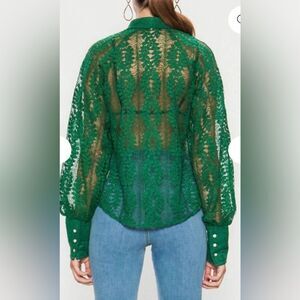 Jealous Tomato Green crochet lace puffy sleeve blouse, S