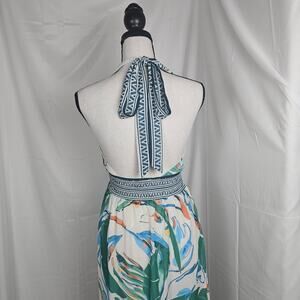 Jealous Tomato Halter Maxi Dress Women Small White Tropical Boho Resort Vacation