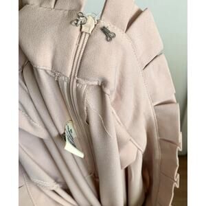 Wide leg, pleated front, high waist, paperbag waist, detachable fabric sash belt, hidden side zipper and hook & eye closure. Lightweight, flowy and versatile pants that can be dressed up or down! Pre-loved, some small stains that have not been treated (see close ups in photos), otherwise in good condition!