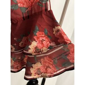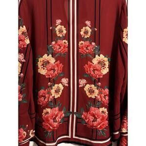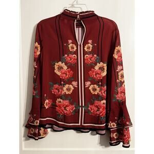 Jealous Tomato Long Sleeve Floral Top Blouse Burgundy Academia Size L Office