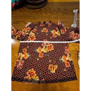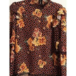 Jealous Tomato Long Sleeve Floral Womens Top Blouse Brown Office Academia Size L