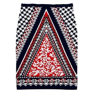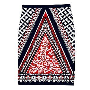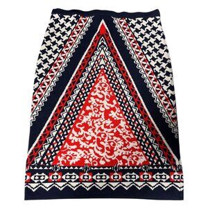 Jealous Tomato Red Navy Geometric Knit Skirt – Size Medium