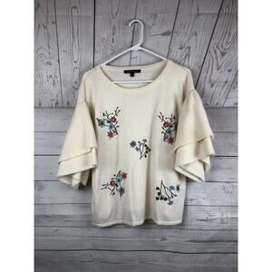 Ladies small JEALOUS TOMATO cream floral embroidered 3/4 sleeve sweater