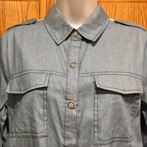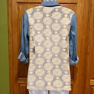 Jealous Tomato Utility Jacket/Top Ivory Lace Back Snap Front Blue Small