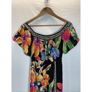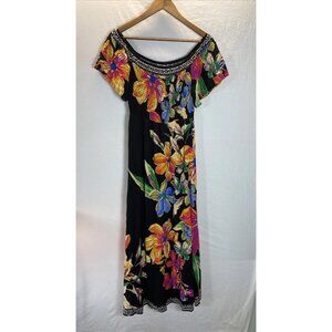 Jealous Tomato size L Off Shoulder Dress Black Floral Tropical Beach aysemmetric