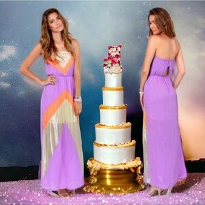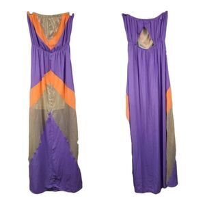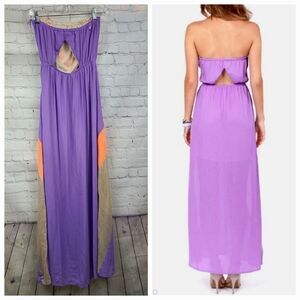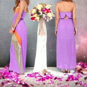 Jealous Tomato Sexy Purple Strapless Maxi Dress Boho Sheer Panel Open Back SMALL