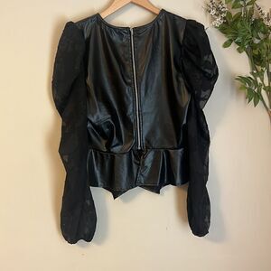 Jealous Tomato Faux Leather Puff Sleeve Top Size: M