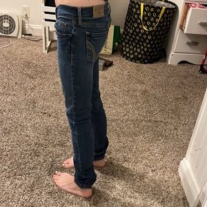 Low rise, stretch straight leg jeans.