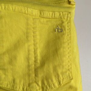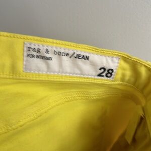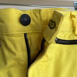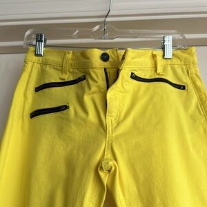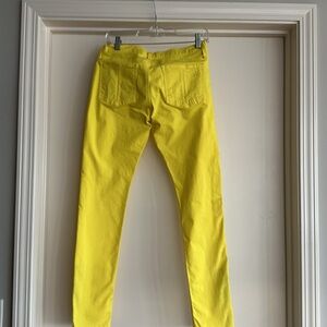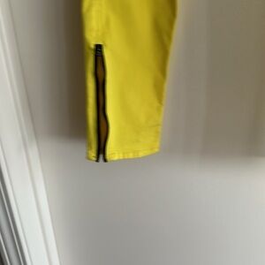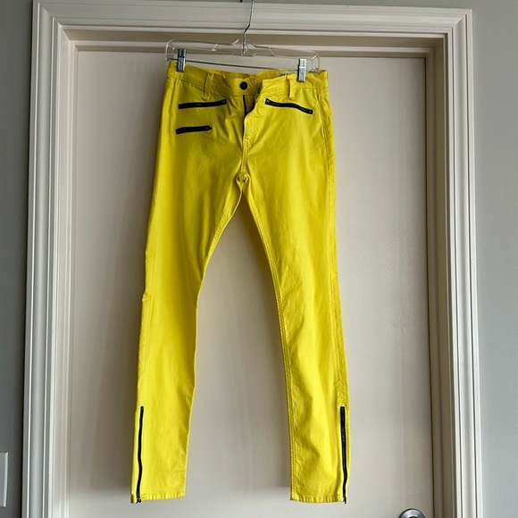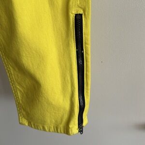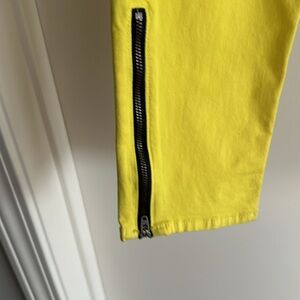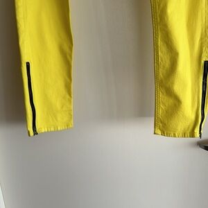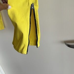 Rag’n’Bone Jean for intermix yellow jean with zippers at the bottom of the leg on each side and zipper at the top of the Jean