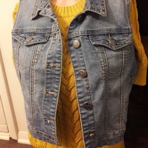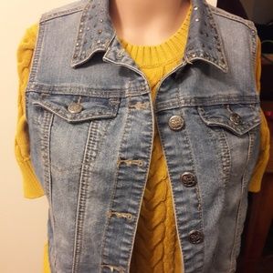 Cute Cropped Jean jacket. Nice accessory to an outfit. Gold and Silver studs on collar.