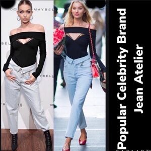 Jean Atelier’s Flip jeans feature a flattering high rise with a smart fold over waistband that adds unexpected flair to easy straight leg jeans. Pairs well with cropped tees or blouses.