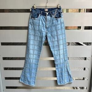Jean Atelier Unique Grid Stitch Contrast Denim Flare Jeans Size 26