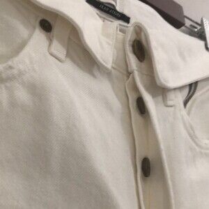 Jean Atelier women’s Size 28 100% Cotton High Rise Flip Waist Distressed Denim Jeans in White Sand